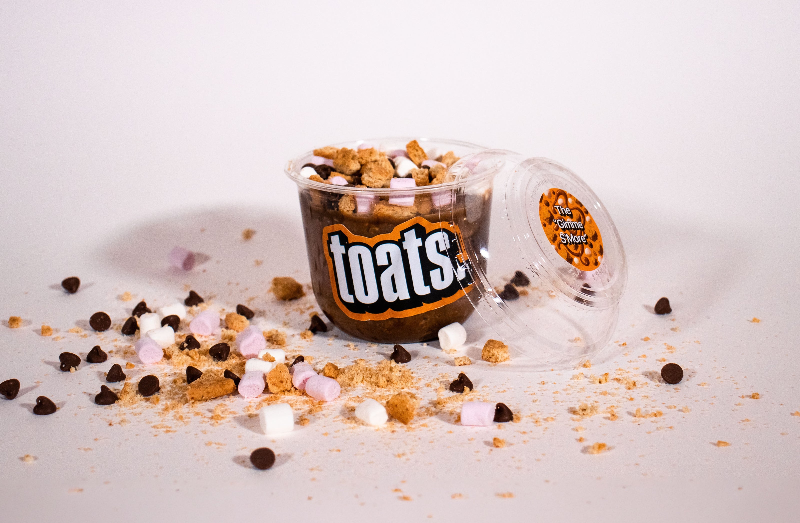 Ingredients: Skyr yoghurt (milk) (69.7%), wholegrain oats (10.5%), chocolate whey protein (8.7%) (whey protein concentrate (milk), whey protein isolate (milk), soy protein isolate (soya), emulsifier: sunflower lecithin, fat-reduced cocoa powder, flavouring, thickener: xanthan gum, salt, sweetener: sucralose), milk chocolate chips (1.7%) (sugar, whole milk powder (milk), cocoa butter, vegetable oil (palm, sal, shea, mango kernel), natural flavouring), mini marshmallows (1.7%) (glucose syrup, sugar, water, dextrose, humectant: sorbitols, pork gelatine, modified potato starch, natural vanilla flavouring, colour: beetroot red), wheat biscuit (2.8%) (wheat flour (wheat) (wheat flour, calcium carbonate, iron, niacin, thiamin), palm oil, wholemeal wheat flour (wheat), sugar, invert sugar syrup, raising agents: sodium carbonate, ammonium carbonates; salt), sugar-free salted caramel sauce (4.9%) (water, brown erythritol, caramel extract, vanilla extract, salt, thickener: xanthan gum)