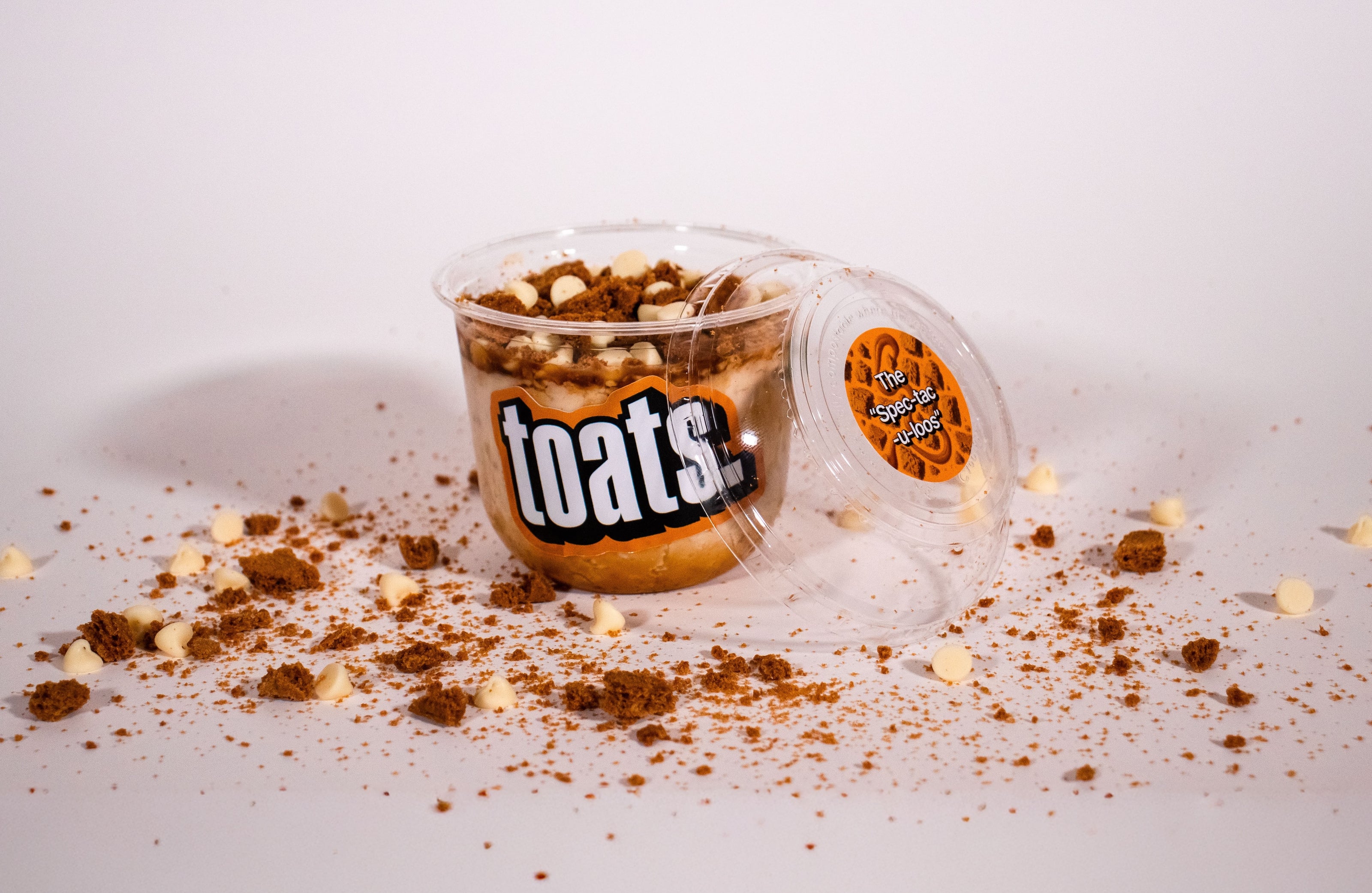 Ingredients: Skyr yoghurt (milk) (69.0%), wholegrain oats (10.3%), vanilla whey protein (8.6%) (whey protein concentrate (milk), whey protein isolate (milk), soy protein isolate (soya), emulsifier: sunflower lecithin, flavouring, thickener: xanthan gum, salt, sweetener: sucralose), white chocolate chips (1.7%) (sugar, cocoa butter, whole milk powder (milk), whey powder (milk), vegetable oil (palm, sal, shea, mango kernel), emulsifier: soya lecithins, natural flavouring), caramelised biscuit spread (2.6%) (60% caramelised biscuits (wheat flour (wheat), sugar, vegetable oils (palm, rapeseed), sugar syrup, raising agent: sodium carbonates, salt, cinnamon), oil, sugar, emulsifier: rapeseed lecithins, natural flavouring, acid: citric acid), caramelised biscuit (2.9%) (wheat flour (wheat), sugar, sunflower oil, sugar syrup, soya flour, raising agent: sodium carbonates, salt, ground cinnamon), sugar-free salted caramel sauce (4.8%) (water, brown erythritol, caramel extract, vanilla extract, salt, thickener: xanthan gum)